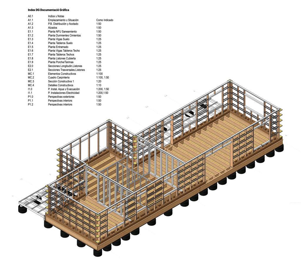 The integration of Building Information Modeling (BIM) into small-scale residential projects opens a particularly relevant field of experimentation when applied to self-building processes. Beyond its conventional use in professionalized construction environments, BIM can operate as a design and decision-making tool that anticipates the act of building itself, allowing the project to be constructed virtually before being executed on site.